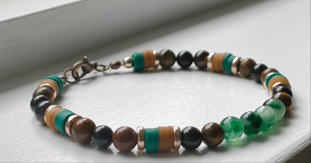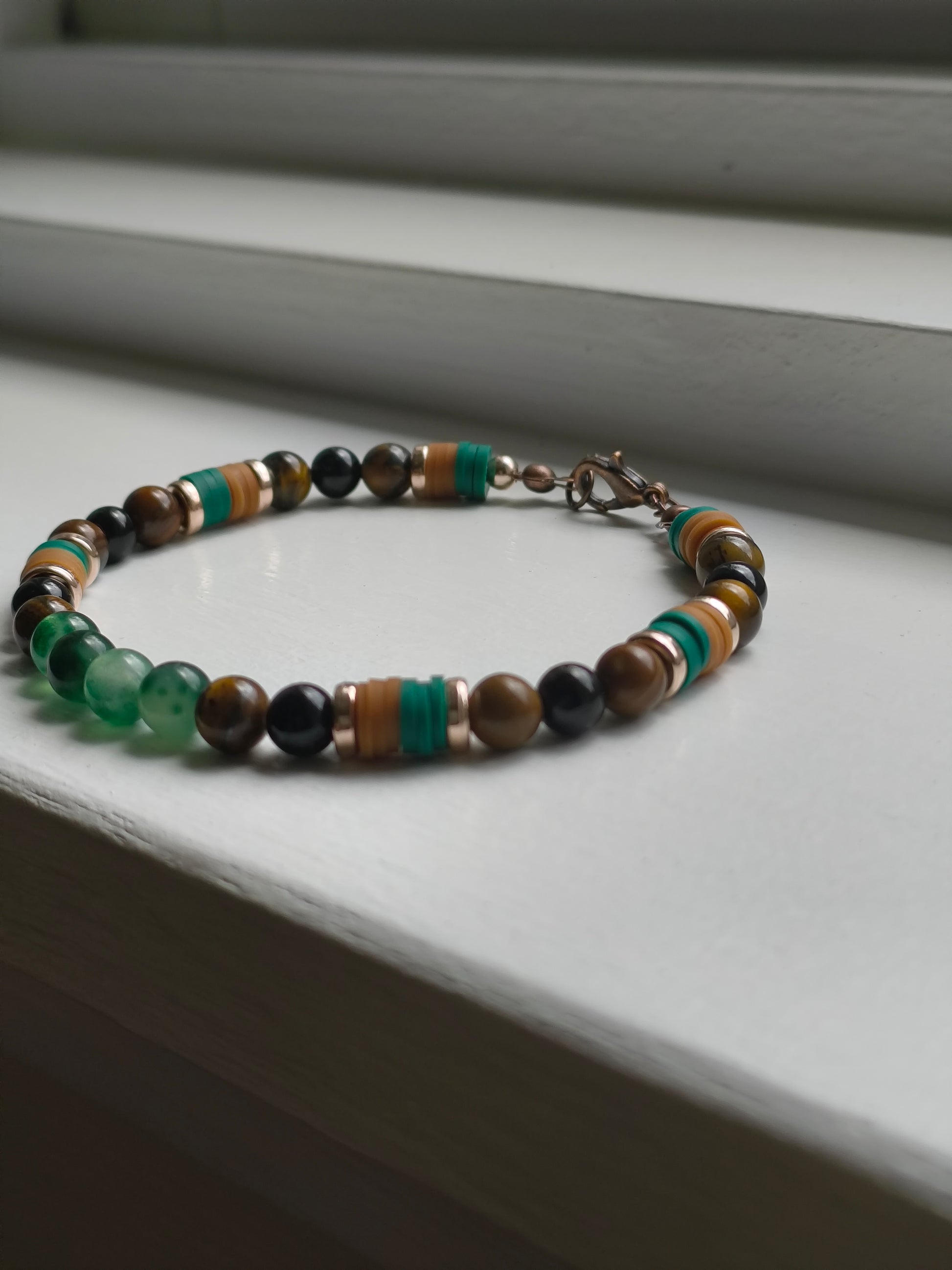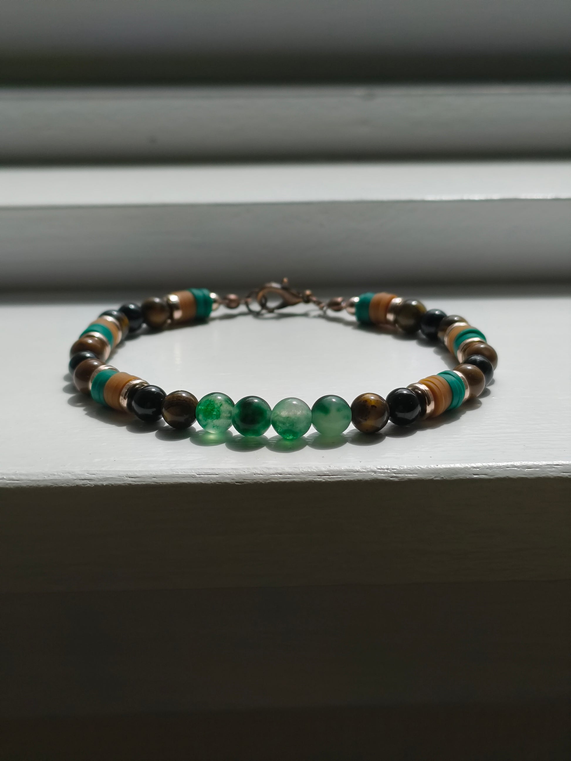Framed with forest green and rich chocolate brown clay beads and accented with bronze spacers, Jungle Soul feels like walking barefoot through ancient woods. Each bead is intentionally placed to reflect strength, survival, and spiritual depth.