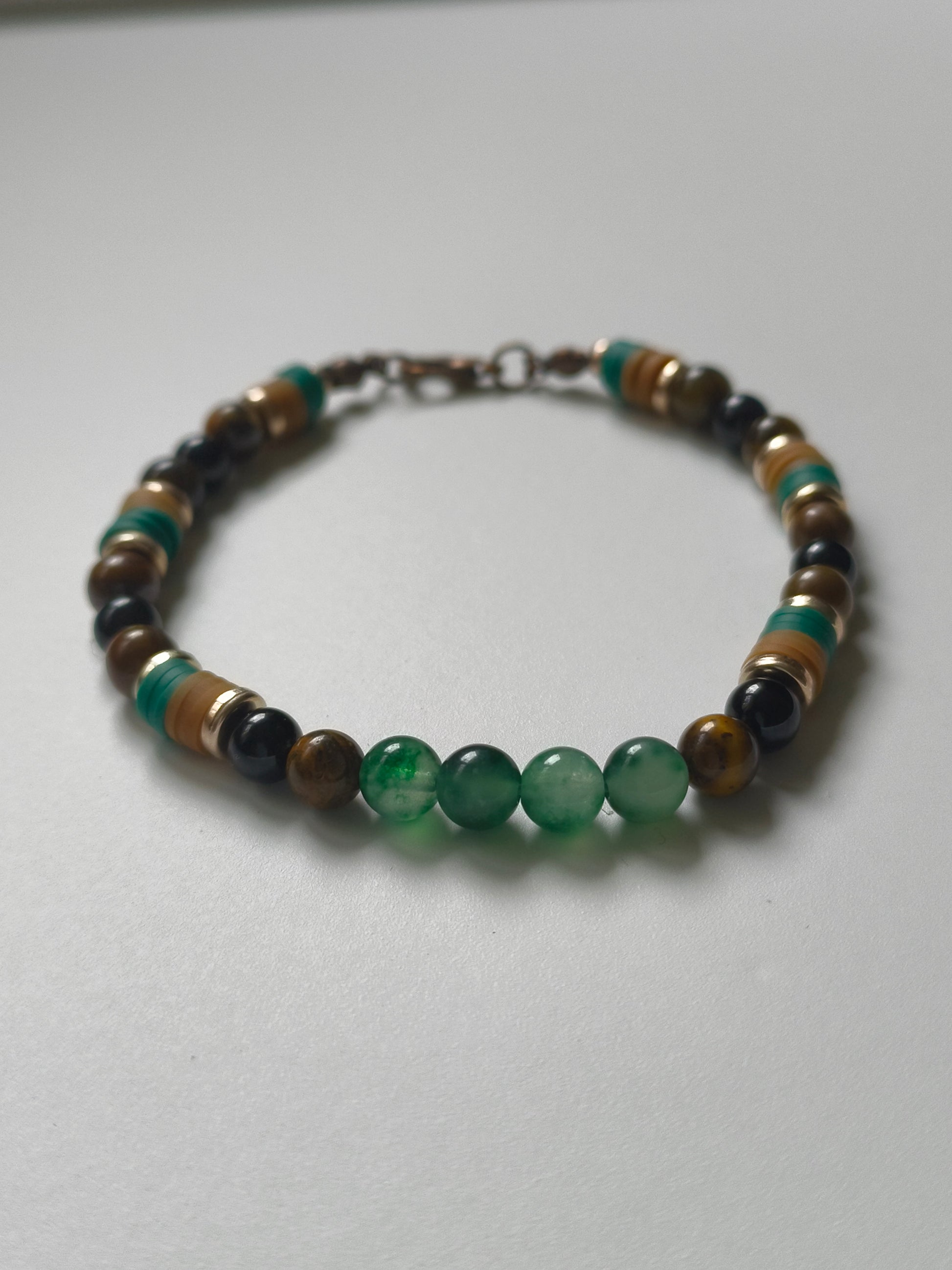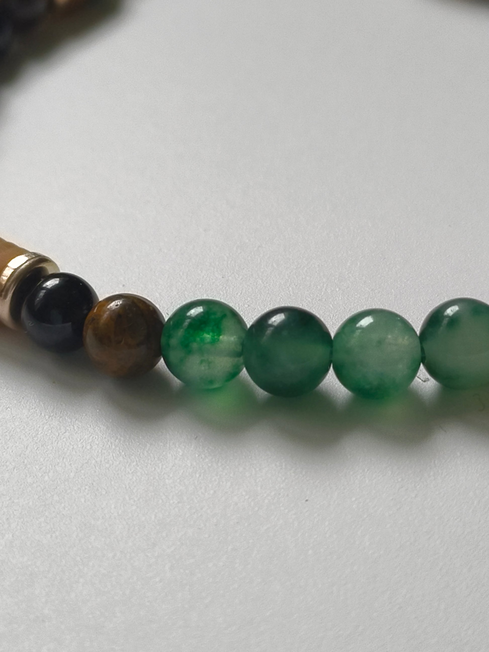 Tap into your wild side with Jungle Soul — a protective, earthy bracelet inspired by the untamed power of nature. Crafted with deeply grounding Black Tourmaline, intuition-boosting Yellow Tiger Eye, and nurturing Green Chalcedony, this piece is made to hold you steady while you move boldly.
